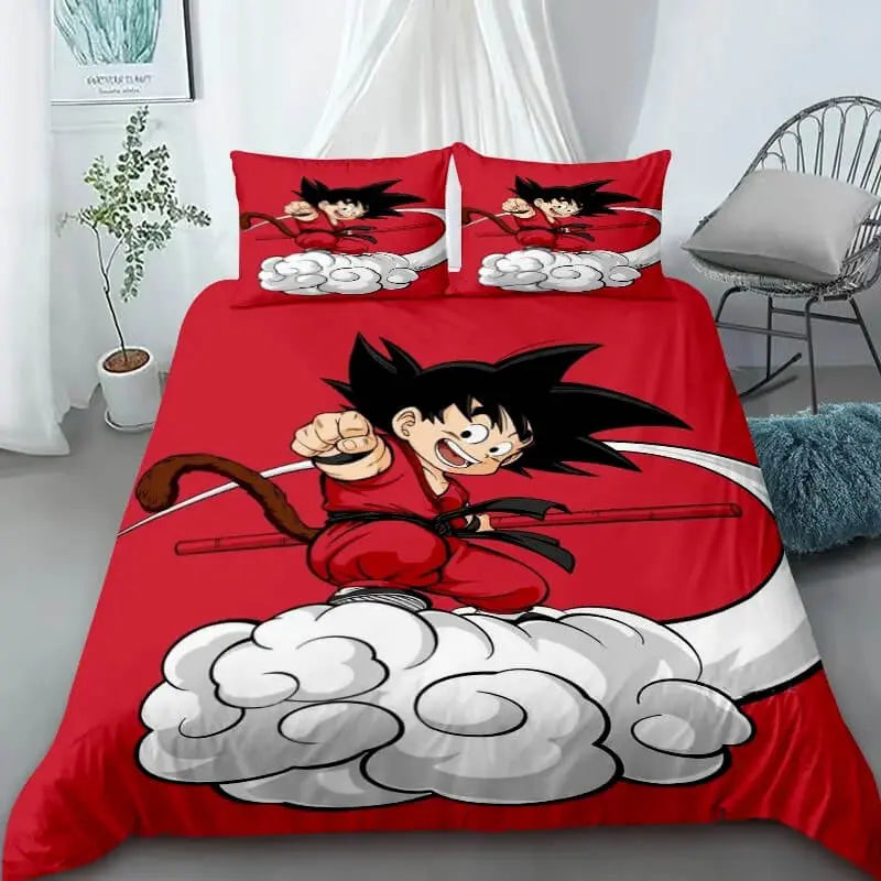 Transform your bedroom into a relaxing retreat with this lush Goku Dragon Ball Z Cartoon duvet cover set. The ultra-soft microfiber fabric provides irresistible softness you'll want to cuddle up in night after night.
