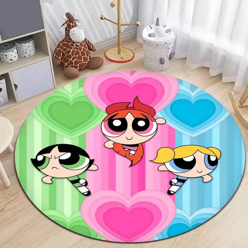 Powerpuff Girls Premium Soft Round Rug – Circle Carpet Mat for Living Room & Bedroom