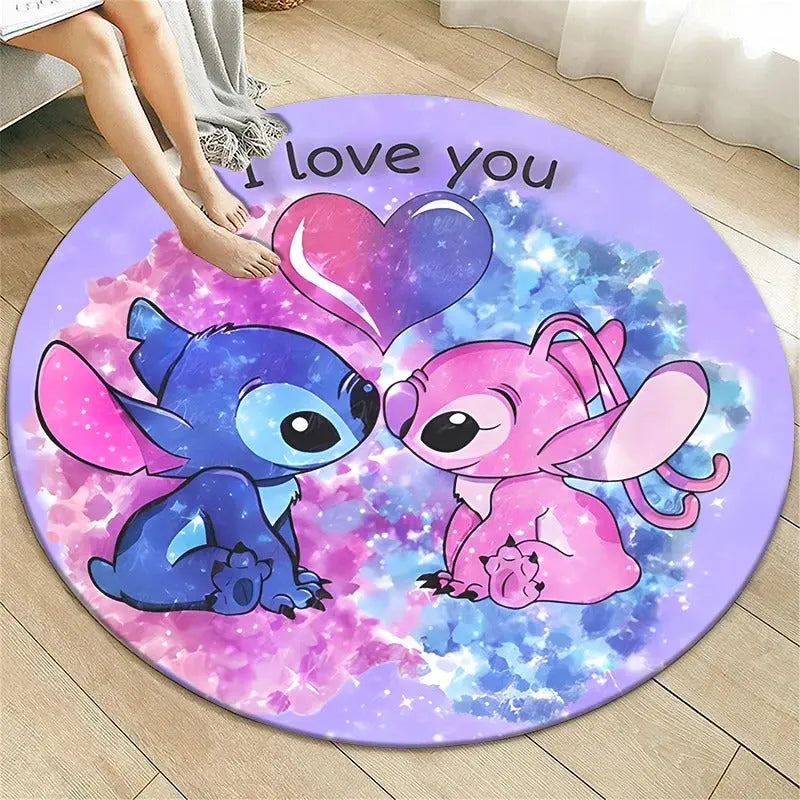 Stitch Flannel Round Rug – Cartoon Anti-Slip Floor Mat for Kids, Yoga & Home Use