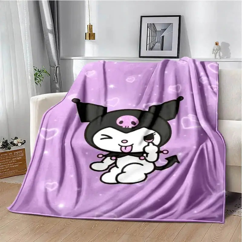 Wrap yourself in the softness of this fleece  kuromi throw blanket. Its plush texture and vibrant colors make it the ideal blanket for adults and kids alike. Drape it on your couch for a pop of color and snuggle up under it on chilly nights. A blanket this cozy makes the perfect gift!