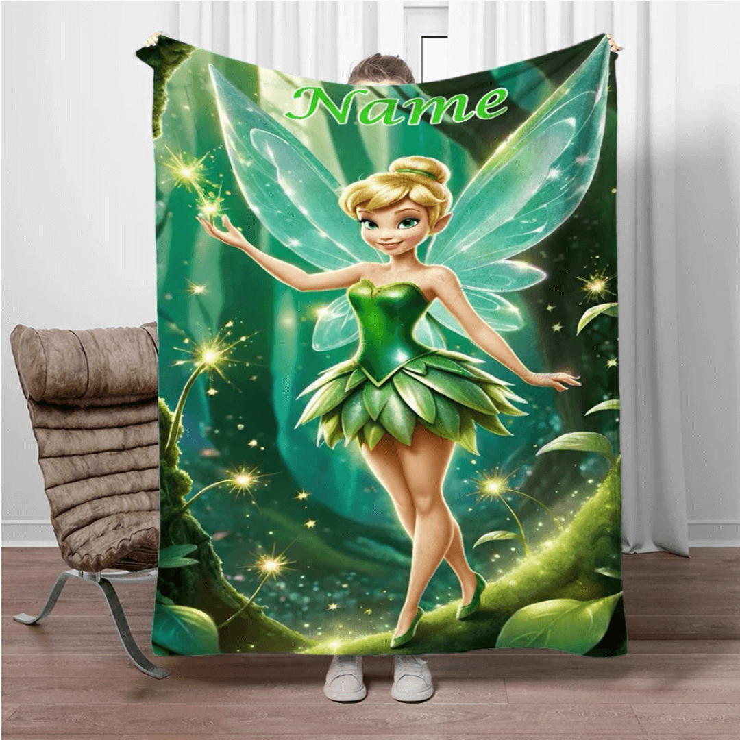 Wrap yourself or a loved one in fairy magic with this enchanting custom Tinker Bell throw blanket – where comfort meets personalization.