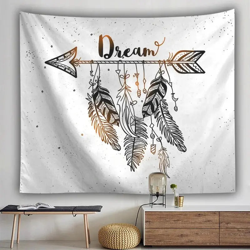 Add soulful energy to your space with this Dream Catcher Wall Carpet — a thick, woven boho statement piece that radiates calming vibes. Featuring rich mandala and feather illustrations, it serves as a grounding element in spiritual and modern spaces alike.