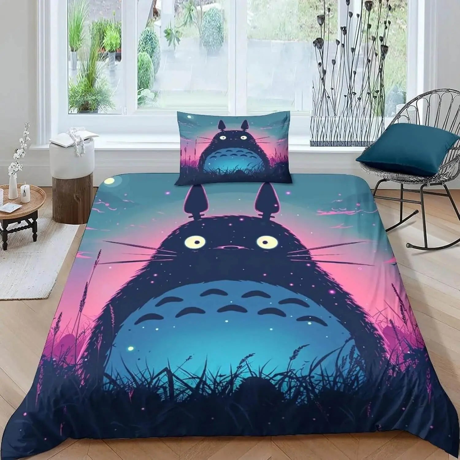 Give your sleep space a stylish update with this eye-catching Anime My Neighbor Totoro Doona Cover Set. The soft, soothing fabric creates a welcoming environment that beckons you into bed each evening. The lively print prevents a boring, bland look. Refresh your space and get ready for the best sleep ever with this must-have Anime My Neighbor Totoro Bedding Set!